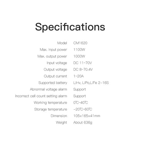 CM1620 1100W 20A Lipo Battery Charger Charging Module 2-16S Life/LiPo/LiHv