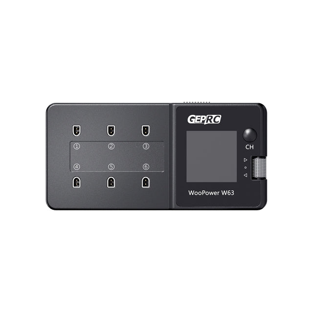 The WooPower W63 is the first 1S charger featuring six independent ports, enabling simultaneous charging, discharging, and storage without cross-interference. Each port supports up to 3.0A charging, extending flight times, while discharging is handled at 0.5A per channel. Advanced safety mechanisms ensure reliable operation. The IPS display provides sharp, easy-to-read visuals, complemented by a user-friendly button layout. Weighing just 160g, its compact design enhances portability for professional use.