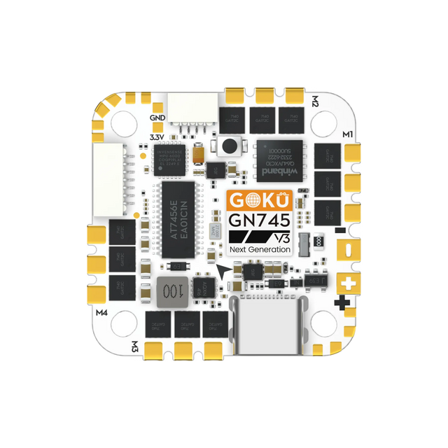 Depuis son lancement, le GOKU GN745 AIO est devenu le produit AIO haut de gamme de Flywoo, gagnant un large succès auprès des passionnés de Betaflight, INAV et Ardupilot. Aujourd'hui, nous sommes ravis de présenter la dernière mise à niveau de cette série : la version V3 ! Le V3 est doté d'une nouvelle solution d'entraînement ESC deux en un, augmentant la capacité de courant continu à 45 A et améliorant la capacité de protection contre les surintensités des pads du moteur, ce qui se traduit par des performances globales plus puissantes. De plus, la version V3 progresse considérablement en termes de commodité, avec 4 nouveaux ports Uart à prise directe et adoptant une interface Type-C pour une connectivité plus facile.