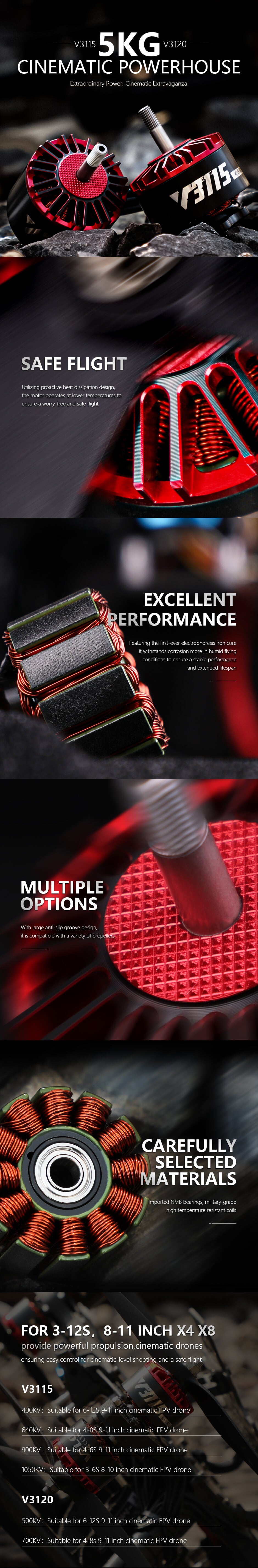 The T-Motor V3115 is made of high-quality materials, delivering reliable power.