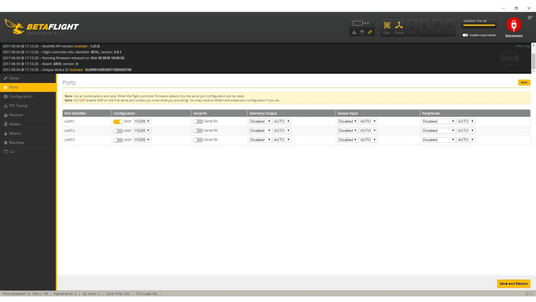 Using a VTX or external RX? This is the tab that helps the flight controller identify inputs and outputs from receivers, video transmitters, and more. If you're building a quad, you'll likely have to alter some default settings within here to get your receiver or video transmitter to work. Pre-built or BNF quads normally don't need any alteration at all.