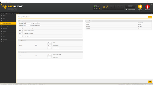 This tab is important as it helps your drone determine its healthy voltage range for flight and also aids in battery-related OSD functions. The Min/Max cell voltage and MAH are important as they help ensure a safer flight and a longer battery lifespan. To get the correct cell voltage and MAH, refer to your battery manufacturer.