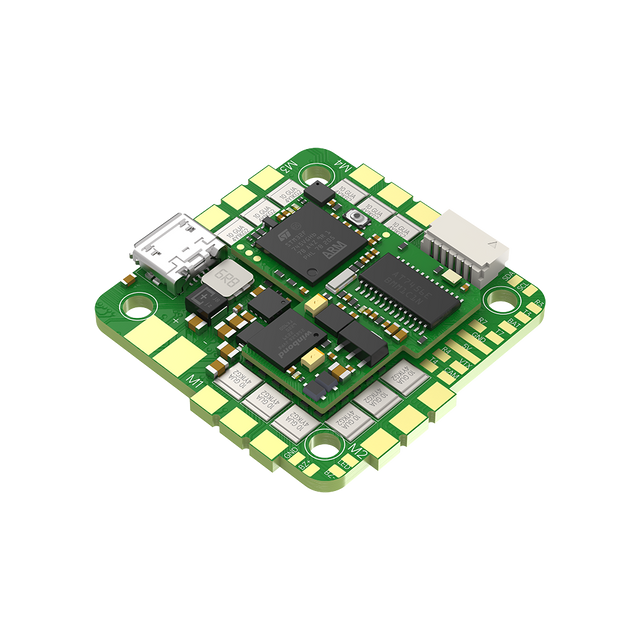 The iFlight BLITZ Whoop F7 AIO features a distinct Flight Control board design that reduces electrical gyro interference. It supports DJI O3 and Caddx Vista/Polar pass-through connections. The FC PCB is detachable from the ESC PCB, enabling straightforward repairs. Powered by a BGA-STM32F745 MCU at 216MHz, it includes an AT7456E OSD, 16MB onboard flash for Blackbox data, and a BMI270 gyro for precise flight control.